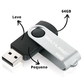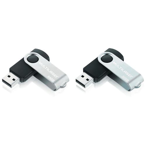 Kit Pendrive 64G 32Gb Multilaser Twist 2.0 Preto Para Musicas Fotos Videos Caixa De Som Computador Kit com Pendrive Twist Multilaser 32Gb e 64Gb: - Ideal para o uso diário- Capacidade de 32Gb e 64Gb- Transferências rápidas e práticas de armazenamento- Tenha em mãos suas fotos, vídeos, documentos e o que mais for necessário- Com proteção na entrada- 10 anos de garantia Informações adicionais: - Marca: Multilaser- Modelos: PD589 / PD590- Cor: Preto- Usb 2.0- Velocidade de leitura: 10 MB/s- Velocidade de gravação: 3 MB/s - Material: Plástico e Metal- Medidas do produto A x L x C : 9 x 17 X 59 MM- Peso do produto: 19 gramas Conteúdo da embalagem:1 - Pendrive Twist 32Gb1 - Pendrive Twist 64Gb