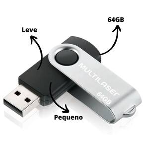 Kit Pendrive 64G 32Gb Multilaser Twist 2.0 Preto Para Musicas Fotos Videos Caixa De Som Computador Kit com Pendrive Twist Multilaser 32Gb e 64Gb: