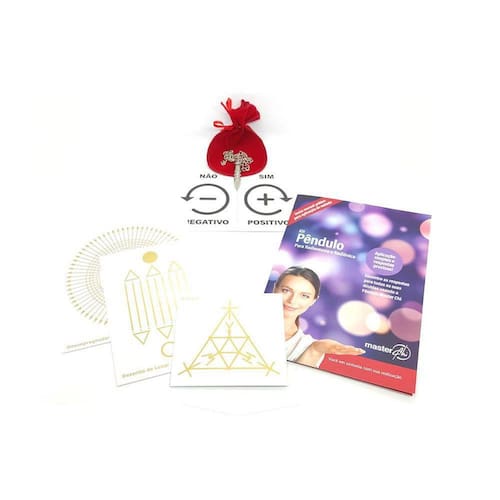 Kit Pendulo Para Radiestesia E Radiônica Prata Descrição:O Pêndulo Master Chi foi projetado por especialistas em radiestesia com o uso da geometria sagrada e numerologia. todas as suas dimensões lineares, ângulos e até o seu peso trazem a frequência numérica da conexão com o divino e a evolução dos níveis de consciência humana, resultando em um equipamento com alta sensibilidade. Esse diferencial proporciona ao usuário o seu mais alto desempenho.Com o uso do Pêndulo você pode: Obter respostas para perguntas sobre diversos assuntos. Fazer limpeza energética dos ambientes. Fazer limpeza das energias negativas de objetos. Fazer uso terapêutico para definir qual o melhor floral, a cor, a pedra ou para qualquer outro tipo de tratamento que um terapeuta utiliza com seus clientes. Receber orientação para tomada de decisões em seu negócio ou emprego. Identificar nos ambientes o local exato de um ponto de energia telúrica nociva. Localizar objetos ou pessoas perdidas. E muito mais Especificações:O Kit Pendulo para Radiestesia e Radiônica contém:1 Pendulo Prata1 Saquinho de veludo vermelho1 Placa Radiônica Desimpregnador 14cm x 14cm 1 Placa Radiônica Desenho de Luxor 10cm x 14cm 1 Placa Radiônica SCAP 10cm x 9cm 1 Cartão Sim/Não Positivo/Negativo Dados TécnicosMaterial:Placa em PS, impressa em tinta dourada com liga especialPêndulo em aço carbonoSaquinho em veludo vermelhoCartão Negativo e Positivo em papelValidade: permanente, enquanto os gráficos estiverem perfeitamente visíveis e sem manchas.