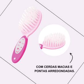 Kit Pente e Escova de Nylon Turminha Animal Cor: Rosa A escova contém cerdas macias e as pontas arredondadas da Escova e o Pente Unik Baby são ideais para os cabelos delicados do bebês Recomendações: Lave com sabão neutro ou shampoo infantil. Mais informações no verso da embalagem. Itens inclusos na caixa: 01 Kit Pente e Escova de Nylon.