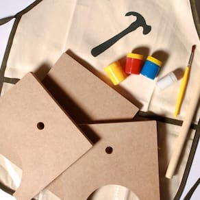 A criança monta e pinta o banquinho em MDF. A atividade dispensa o uso de pregos pois as peças são encaixadas e coladas.