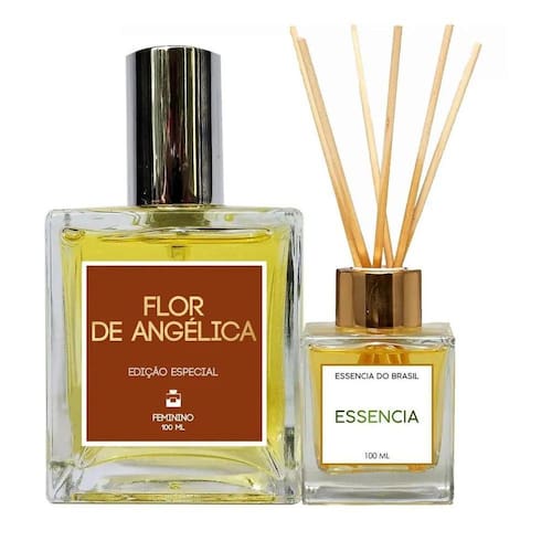 Kit Perfume Feminino Flor Angélica 100ml + Difusor para Casa de PresentePerfume Flor de AngélicaFamília Olfativa: FloralUm aroma 100% natural, a melhor definição de floral, uma fragrância duradoura e marcante. Se você gosta de aromas florais, doces e marcantes, vai se apaixonar por esse perfume. A Angélica possui aroma intenso e bastante agradável.O perfume natural, extraído das flores não faz só você se sentir mais bonita, ele também muda sua energia, te traz calma e uma alegria genuína, proporcionando mais paz para os seus dias.Difusor com Varetas para CasaO difusor de ambiente é capaz de deixar a sua casa com um aroma inconfundível. Sinta-se em casa só de sentir a fragrância, com o difusor você cria um ambiente acolhedor e capaz de encantar todos os moradores e visitantes. Temos aromatizadores de ambiente spray e também com varetas.A versão com vareta garante que o aroma fique no ambiente por mais tempo por ficar estática, enquanto o spray garante a mobilidade e com ele é possível passar a essência em mais cômodos. Para cômodos amplos, escolha os dois e combine o aromatizador de ambiente spray com o difusor de varetas para que o aroma chegue todos os lugares.Enviamos um difusor com varetas para casa de presente para você.Um toque único e especialNossos perfumes e difusores são embalados com música clássica Marca: Essência Do Brasil