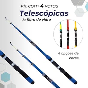 Kit pesca completo 4 varas telescópica + 4 molinetes + iscas Kit acompanha: 4 linhas já enroladas no carretel do molinete 4 varas telescópicas de 1,7 para molinete 4 molinetes ultra light 5 unidades de anzol nº 4 5 unidades de anzol nº 6 5 unidades de anzol nº 8 5 unidades de anzol nº10 4 unidades de chumbada de 5g 2 unidades de chumbada de 10g 4 unidades de chumbada de 3g 9 unidades de boias lambari 1 unidade de snap com girador 1 unidade de 1 unidade de isca lambari 1 unidade de isca camarão 1 pacote de ração com 60g 1 maleta Especificações técnicas: Vara Fabricante: cmik Modelo: telescópica Material: fibra de vidro Utilização: molinete Tamanho: 1,70m Potência: leve Três passadores + ponteira Medida da vara recolhida e com o protetor de ponta 48 cm Peso: 105 gramas Disponível nas cores: verde / azul / vermelho / amarelo Molinete: Marca: cmik ou taue Material do corpo: grafite Material do carretel: grafite Manivela: intercambiável direito ou esquerdo Knob: plástico - sistema anti - reverso Velocidade de recolhimento: 5.2:1 Capacidade de linha: 0,18mm 245m / 0,20mm 200m / 0,25mm 125m Peso: 140 gramas Rolamentos 2 Marca: Não Informado