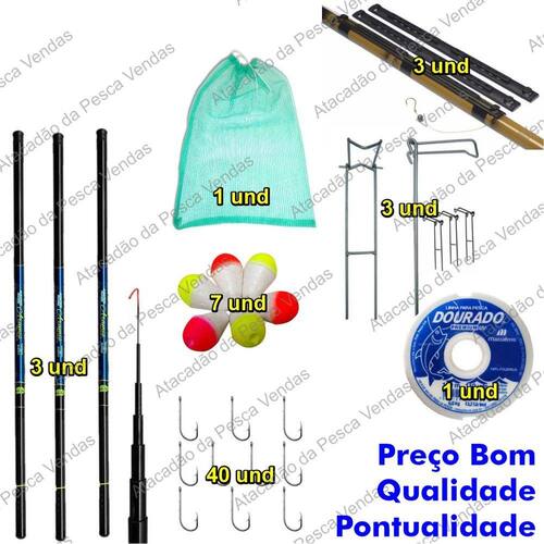 Kit pesca vara de mao telescopica de 2,70 mt.Super leve e resistenteMarca: Albatroz muito renomada no mercado...Conteudo:3 varas 2.70 mt mista carbono1 rolo de linha de 100 metros3 suporte vara com 3 posicao1 pacote boia lambari c/ 7 unidades40 anzois 4 tamanhos diferentes 10 cada tamanho .1 sacola para armazenar os peixes capturados.Cortesia 3 enrolador de linha super util para guardar sua vara e deixar a mesma com a linha e o anzol sem perigo de machucar !!!!!Produto em estoque pronto para envio !!! postamos em menos de 24 horas .