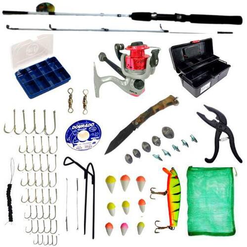 Kit de pescaria iniciante vara molinete mais caixa com varios itens Preparamos este kit com vara, molinete e uma caixa com acessórios, é um kit completo que se você quiser já pode ir e pescar, tudo que você precisa de inicial para pescar está nele, recomendamos o uso para rios, lagos, represas e pesqueiros. Este kit indicado para quem já pesca, para quem quer iniciar na pescaria, ou um excelente presente. Segue abaixo os itens e descrição do produto: Itens: 01 - 01 un. Caixa maleta organizadora 02 - 01 un. Vara para molinete 03 - 01 un. Molinete totó ou dolphin 200 enviado o que estiver disponível em 04 - 50 un. Anzois divididos em 5 tamanhos 05 - 09 un. Boias cores em 3 tamanhos 06 - 12 un. Chumbadinhas divididos em 4 tamanhos 07 - 01 un. Linha 0,25 para 3,6 kg / 100 metros 08 - 01 un. 09 - 01 un. Suporte de chão para vara 10 - 01 un. Sacola de nylon 11 - 01 un. Estojo com 8 repartições pequeno 12 - 02 un. Encastor 13 - 02 un. Girador 14 - 01 un. Stop para chumbada com 10 borrachinhas 15 - 01 un. Isca artificial 16 - 01 un. Alicate pega peixe São mais de 80 unidades Segue mais algumas descrições: Vara 01 unidade de vara tamanho 1,20 metros em 2 partes de 60cm cada Material: fibra de vidro Ação: média lenta Cabo: eva ,que dá mais conforto e leveza para a vara Para peixes de 3-6 kg Peso: 115 gramas Obs: cores enviada conforme , sem escolha Molinete 01 unidade de molinete totó 200 ou dolphin 200 enviado o que estiver disponível em Relação de recolhimento: 5:2:1 a cada 1 volta na manivela ele enrola 5:2 vezes no carretel Rolamento: 01 Fricção: dianteira Peso: 150 gramas Sistema balanceado Capacidade de linha : 0,18 mm - 245 metros 0,20 mm - 200 metros 0,25 mm - 125 metros Obs: cores e modelos enviado conforme , sem escolha Caixa Tamanho: 25cm comprimento x 14,5cm largura x 12cm altura Com uma bandeja com 7 repartições Material: polipropileno Estojo Tamanho: 12cm comprimento x 8cm largura x 2,5cm altura C/ 8 repartições com tampa transparente Cor: azul Material: polipropileno Isca artificial 01 unidade de isca artificial Tamanho: 12cm Material: madeira Cores: verde com listras, azul com listras, amarelo com listras, branco com listras, cabeça vermelha e cores solidas Obs: cores e modelos enviado conforme , sem escolha Linha 100 metros de linha 0,25mm de nylon monofilamento para 3,6 kg Anzol 10 unidades anzol marine sports n 01 -3,0cm x 1,3cm 10 unidades anzol marine sports n 04 - 2,4cm x 1cm 10 unidades anzol marine sports n 06 - 2,1cm x 0,8cm 10 unidades anzol marine sports n 08 - 1,8cm x 0,7cm 10 unidades anzol marine sports n 12 - 1,4cm x 0,5cm Material: aço níquel Boias 3 unidades boia n 01- 1,5cm cores 3 unidades boia n 02 - 2,0cm cores 3 unidades boia n 03 - 2,5cm cores Material: isopor Cinza 7 unidades Cinza totalizando 2 gramas 2 unidades Cinza 5 gramas cada 2 unidades Cinza 10 gramas cada 1 unidade Cinza 15 gramas Material: Cinza Girador Tamanho: n 08 2cm Material: aço inox Encastor 02 unidades medindo fio 0,26 x 10cm Material: fio de aço Stop chumbada 01 unidade de stop para segurar a chumbada na linha com 10 borrachinhas Tamanho: 15 cm aberto Material: metal Será enviado conforme , sem escolha Suporte para vara Tamanho: 20 cm comprimento x 7,5cm apoio da vara Material: metal pintado Sacola de nylon Tamanho : 30cm comprimento x 45cm altura Material: nylon Alicate pega peixe Tamanho: 19cm Material: polipropileno Nós da equipe sekyped trabalhamos com produtos de qualidade, visando sempre oferecer aos nossos clientes o que há de melhor para que possam ter experiências inesquecíveis em suas pescarias, buscamos sempre enviar o seu produto o mais rápido possível, estamos sempre a disposição para qualquer dúvida. Att equipe sekyped