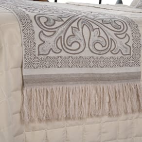 INFORMAÇÕES ESPECÍFICAS: - Ótima qualidade e acabamento; - Dupla Face, podendo facilmente usar dos dois lados; - Acompanha um par de almofadas cheias também dupla face e com zíper, podendo tirar o refil (enchimento) para facilitar a lavagem; - Peseira possui franja, deixando o produto ainda mais bonito; - Disponível em 4 opções de cores e super versátil, podendo usar na cama e também em sofás e poltronas, como preferir.