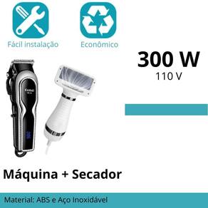 Descrição do Anúncio: Proporcione um cuidado completo e para o seu pet com o Secador e Máquina de Tosa Portátil 2 em 1. Este equipamento multifuncional é essencial para manter o pelo de cães, gatos e outros animais de estimação sempre limpo, macio e bem aparado. O secador de pelo oferece uma secagem rápida e eficiente, enquanto a máquina de tosa permite um corte preciso e seguro. Com este combo prático, você terá em mãos tudo o que precisa para cuidar do seu pet, seja para um banho relaxante ou uma tosa detalhada, diretamente no conforto da sua casa. Conteúdo da Embalagem: 1 x Secador de Cachorro Portátil 2 em 1 1 x Máquina de Tosa Pet 4 x Pentes Guia para Tosa 3mm, 6mm, 10mm, 13mm 1 x Cabeça de Escova Substituível 1 x Cortador de Unhas e Lixa 1 x Manual de Instruções Características: Multifuncionalidade Completa: Integra as funções de secador de pelo e máquina de tosa em um único dispositivo, otimizando o tempo e o esforço no cuidado com o seu pet. Secador de Alta Performance: Equipado com uma potência de 300W, o secador proporciona uma secagem rápida e eficiente, com três configurações de calor ajustáveis para atender às necessidades específicas de cada tipo de pelo. A escova integrada ajuda a remover pelos soltos, deixando o pelo do seu pet macio e brilhante. Máquina de Tosa : A máquina de tosa sem fio possui lâminas de aço inoxidável ajustáveis, oferecendo cortes precisos e seguros. Com diferentes pentes guia e um motor de alta velocidade, ela é perfeita para realizar tosas em pets de todos os tamanhos, desde cortes mais curtos até acabamentos mais detalhados. Segurança e Conforto: Ambos os dispositivos são projetados com proteção contra superaquecimento e operam silenciosamente, garantindo a segurança e o conforto do seu pet durante o uso. Portabilidade e Versatilidade: O design leve e compacto facilita o transporte e o uso em diferentes ambientes, ideal para quem busca praticidade tanto em casa quanto em viagens. Especificações: Secador de Cachorro: Dimensões: 24x12 cm, Peso: 310 g, Potência: 300W - 110V, Material: ABS e Aço Inoxidável, Configurações de Calor: 3 níveis. Máquina de Tosa: Material: ABS, Potência: 5W, Tela LCD para monitoramento de bateria, Tensão Bivolt, Autonomia: até 120 minutos, Tempo de Carregamento: 3 horas, Ajuste de lâmina de 0,5 mm a 1,0 mm. Principais Perguntas Sobre o Produto e Respostas: 1 O secador e a máquina de tosa são seguros para uso prolongado sim, ambos possuem proteção contra superaquecimento e são feitos com materiais de alta qualidade para garantir segurança durante o uso. 2 posso usar esses produtos em animais com pelo longo sim, tanto o secador quanto a máquina de tosa são adequados para todos os tipos de pelo, desde os mais curtos até os mais longos. 3 os produtos são barulhentos não, ambos são projetados para operar de forma silenciosa, reduzindo o e garantindo uma experiência mais confortável para o seu pet. 4 como faço para limpar o secador e a máquina de tosa desconecte da tomada e use um pano úmido para limpar as superfícies. Remova pelos das lâminas e escova regularmente para manter o desempenho ideal. 5 os produtos são portáteis sim, possuem design compacto e leve, facilitando o transporte e permitindo o uso em qualquer lugar, tanto em casa quanto em viagens.