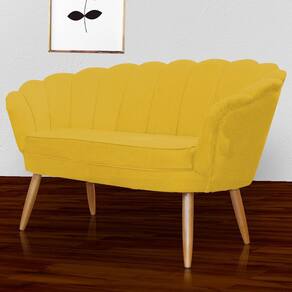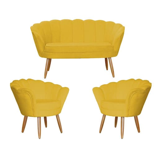 Kit Pétala Namoradeira e 2 Poltronas Decorativa Pés Palito Veludo Mostarda - LM DECOR