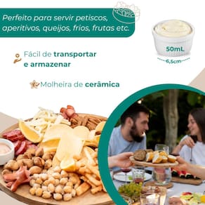 Tradicional e Funcional: Esta molheira estilo Ramequim em cerâmica é perfeita para servir todo tipo de molho, complementando os petiscos de forma elegante e prática.