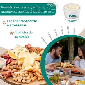Em nossa busca por momentos de convívio e apreciação gastronômica, apresentamos o Conjunto Petisqueira para Frios, acompanhado por uma Molheira Ramequim e um Kit de Garfinhos, perfeito para encontros descontraídos entre amigos e familiares.