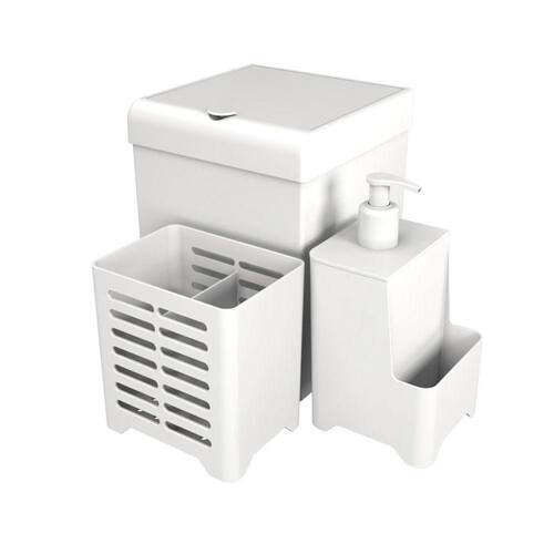 Kit Pia 3 Peças Lixeira Dispenser Porta Talher Cozinha - Stolf Branco