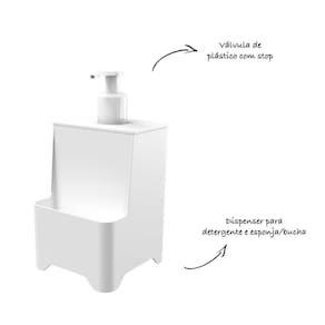 - Características: Acompanha caixa - Lixeira possui arco para esconder sacola - Dispenser capacidade de 650ml , válvula com trava