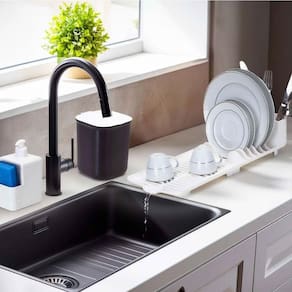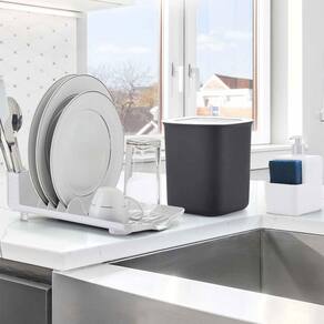 Kit pia compacto escorredor 4 pratos dispenser lixeira 2,5l cor preto ========== sobre o produto ========== O kit para pia da dasplast é composto por 3 peças, sendo ideal para proporcionar praticidade e organização para sua cozinha. Este conjunto inclui um escorredor slim com capacidade para 4 pratos, copos e talheres, e conta com um escorredor de água integrado para manter a pia seca e limpa após a lavagem da louça. O kit também possui uma lixeira de 2,5 litros, adequada para descartar pequenos resíduos durante o preparo das refeições, otimizando o espaço na bancada. Para auxiliar nas tarefas diárias, o kit é equipado com um dispenser de detergente, facilitando o armazenamento e o acesso ao detergente para a lavagem da louça de maneira eficaz. Fabricado com material de alta qualidade, o kit oferece durabilidade e resistência. Disponível nas cores branca e preta, o kit para pia da dasplast se harmoniza com diversos estilos de cozinha, contribuindo com um toque de sofisticação ao espaço. ========== ficha técnica ========== Medidas: 27 x 17,5 x 17 cm Cor: branca Capacidade do escorredor: 4 pratos, talheres e copos. Capacidade da lixeira: 2,5l Capacidade do dispenser: 500ml P: o produto é novo ou