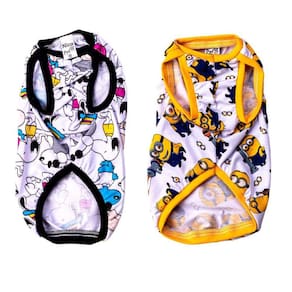 Kit Pijama para cachorro estampa minions e snoopy - tamanho P- pijama confeccionada em malha pv poliéster com viscose na cor branca;- estampa temática dos personagens minions e snoopy ;- acabamento em cotton preto;Medidas aproximadas:- TAMANHO P:Pescoço: 19 cm de circunferência Abdômen / torax: 32 cm de circunferência Comprimento: 30 cmAlém de muito confortável e lindo, deixará seu pet ainda mais charmoso. Marca: Nicapet