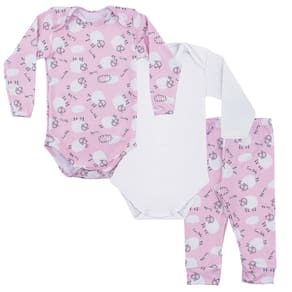 O Kit pijama térmico Bebê com 2 Bodies e Calça Carneirinhos Rosa e branco é confeccionado em malha Energy Up Thermo Dry com tecnologia térmica que absorve melhor o suor, deixa a bebê confortável, aquecida e com a temperatura mantida. É o pijama ideal para o inverno. Os bodies possuem botões de pressão entre pernas. Contém 1 body liso + 1 body estampado + calça térmica estampada.