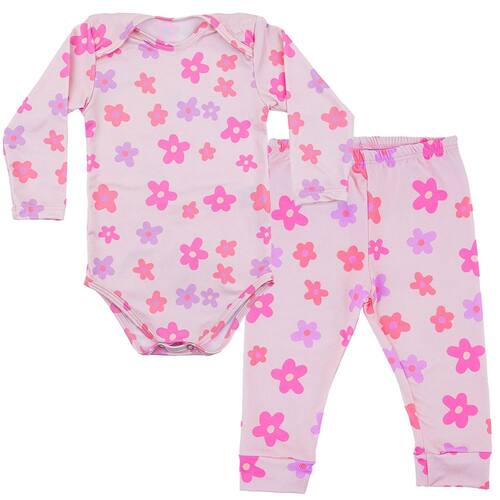 O Kit pijama térmico Bebê Flores Rosa é confeccionado em malha Energy Up Thermo Dry com tecnologia térmica que absorve melhor o suor, deixa o bebê confortável, aquecido e com a temperatura mantida. É o pijama ideal para o inverno. O body possui botões de pressão entre pernas.