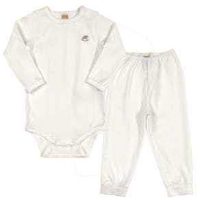 Kit Pijama Térmico Body e Calça Bebê Energy Thermo Dry Natural Up Baby - Branco - G