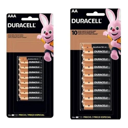 Kit Pilha Duracell Alcalina Cartela Aa 16 + Aaa 16 Alcalina