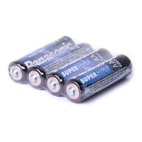 marca: panasonic linha: comum super hyper modelo: pequena tamanho da pilha: aa forma: cilíndrica formato de venda: display unidades por kit: 20 voltagem nominal 1. 5v tipo da pilha: não recarregáveis