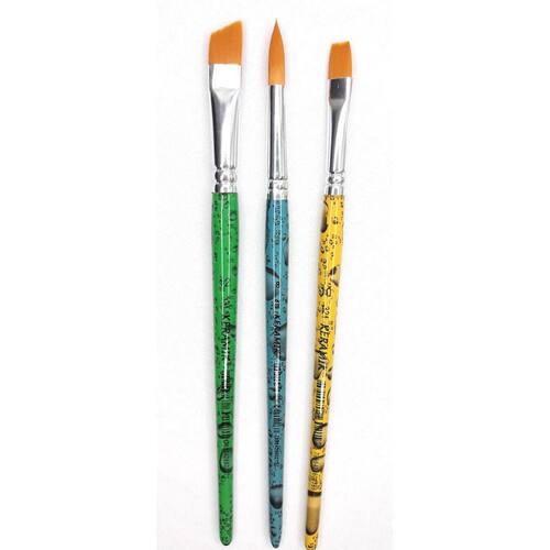 01 Pincel Angular-chanfrado 331-8 Pincel angular cabo curto decorado em madeira e pelo em nylon dourado.