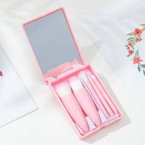???? Leve praticidade e charme para sua rotina! Garanta já seu Kit 5 Pincéis Mini com Espelho e esteja sempre pronta para arrasar!