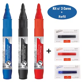 Kit Pincel Marcador Para Quadro Branco Recarregável 3 Cores + 3 Refis - Faber-Castell