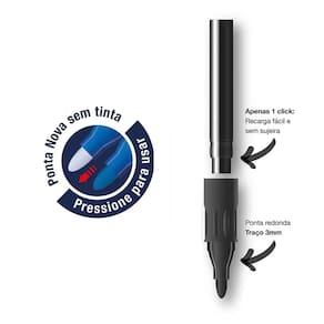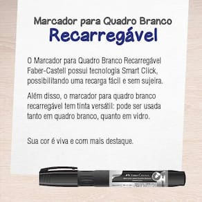 Pincel Quadro Branco Smart Click Faber Castell, recarga fácil e sem sujeira em apenas 1 click, emborrachado para uma escrita confortável e macia e tinta facilmente removível com flanela ou apagador.