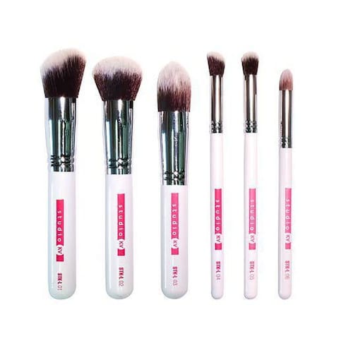 Kit Composto por 6 pinceis fundamentais para uma maquiagem incrível Cada modelo é desenvolvido com cerdas sintéticas de alta tecnologia chamada Taklon, um toque incrivelmente macio. São perfeitos para a aplicação de produtos cremosos, líquidos ou em pó. Perfeito para levar na nécessaire para todos os lugares.