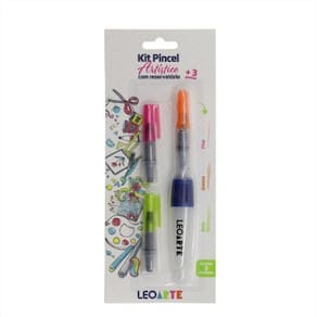 Kit pincel artístico com reservatório water brush lettering 3 pontas leoarte sua imaginação é o limite. Com a leoarte você dá vida às suas ideias e explora o melhor da criatividade. O pincel artístico com reservatório water brush é ideal para lettering ou pintura. Para utilizá-lo, basta abastecer o reservatório com água e apertar levemente, regulando a quantidade de água que você deseja. Características: 3 tipos de pontas: fina, grossa e reta. Ideal para lettering ou pintura em aquarela. E artístico composição: resina termoplástica e cerdas em poliéster.