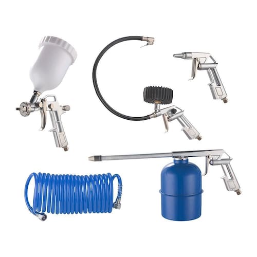 Kit Pintura 5 Peças Bremen - Em Polietileno e Alumínio - Para Calibrar Pneus, Limpeza, Artesanato, Pulverizações Com Líquidos, Encher Bolas, etc Acompanha: - Ferramenta de aplicação Para Pintura Gravidade - Soprador de Ar - Mangueira Espiral - Calibrador de Ar com Manômetro - Pulverizador com Caneca OBS.: Rosca 1/4 NPT Marca: Não Informado