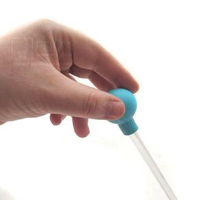 Instruções de uso: Sugue o alimento ou vitamina líquida apertando e soltando a pêra de borracha. Aproxime do alvo a ponta flexível e pressione a pêra para dispersar o conteúdo.