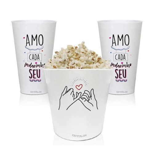 O Kit Pipoca Personalizado com 2 Copos Big Drink e 1 Balde de pipoca é o presente ideal para presentear quem a gente ama nesse Dia dos Namorados Com personalização pensada especialmente para agradar aquele que está presente em nosso coração, é o kit perfeito para vocês aproveitarem o dia vendo seus programas favoritos acompanhados de uma bela pipoquinha e uma bebida refrescante Aproveite o Kit Personalizado da krystalON e surpreenda seu amor nesse dia tão especial