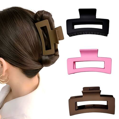 3 piranhas de cabelo grandes em plástico ultra resistente, perfeitas para todos os tipos de cabelo. Cores elegantes: preto, marrom e rosa. Ideal para uso diário ou para dar aquele toque especial em penteados!