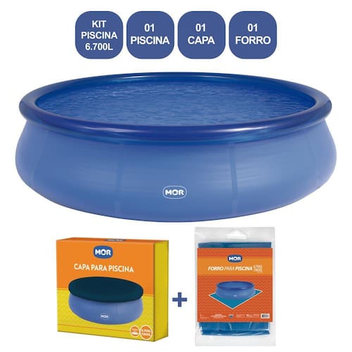Piscina Inflável 6.700 litros Mor é excelente para a diversão de crianças e adultos! Sua estrutura é feita com lona reforçada com laminado duplo e uma trama de poliéster entre as lâminas, que lhe conferem maior resistência. Esse tipo de piscina oferece inúmeros benefícios, a começar pela praticidade de montá-la: basta estender a lona no chão, inflar a borda com o auxílio de uma bomba de ar e encher de água até a altura indicada no manual. Acompanha ainda válvula de deságue, válvula de filtro e kit reparo. Abuse do filtro solar e utilize um Gazebo para proteger a família e os amigos do sol enquanto curtem bons momentos na água!Nunca deixe crianças sozinhas perto da água sem supervisão de um adulto. ATENÇÃO: produto com embalagem retrabalhada!