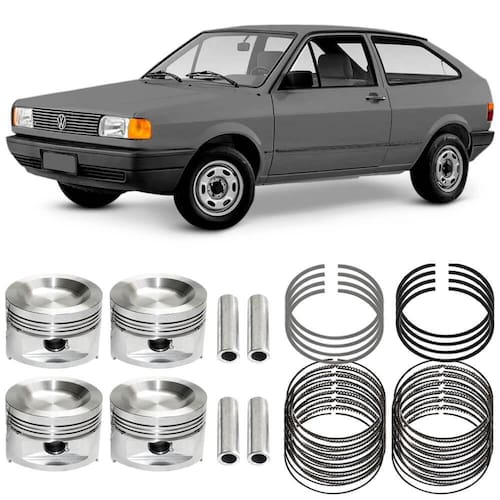 O pistão do motor é uma peça que fica localizada no interior dos cilindros, na verdade cada cilindro possui um pistão. Este componente que na maioria das vezes é fundido em ligas leves se movimenta retilineamente em dois sentidos, para cima e para baixo, e tem por principal função receber, em toda sua área superior, a explosão da mistura de ar e combustível. A explosão da mistura de combustíveis gera um deslocamento de massa de gases dentro da câmara de combustão e o pistão recebe esta força e passa a diante. Os anéis de pistão são peças muito importantes para o perfeito funcionamento do motor. Estas peças de forma circular são fabricadas com uma liga de aço-carbono com um teor de carbono bem elevado, o que da dureza a esses componentes, com certa fragilidade.