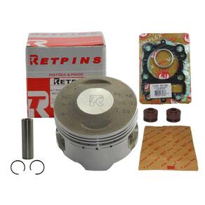 Kit Pistão e Anéis Stx 200 / Motard 200 0,25 - Retpins Produto: Novo Marca: Retpins Refere-se: 01 Pistão Retpins + 01 Pino do Pistão + 02 Travas do Pistão + 01 Kit A de junta + 01 Kit de Anéis + 02 Retentores de Válvulas. Produto novo de ótima qualidade, desenvolvido para sua moto. Part Number: 844613218989 Technical card - Número de peça: 461321056 - Kit de anéis de aceite incluído: Sim - Largo da trava do pistão de motor: 16 - Lubricante de instalação incluído: Não - Diâmetro interno do pistão de motor: 66,25 - Diâmetro externo do pistão de motor: 66,25