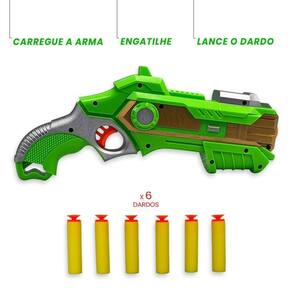 Com 06 dardos feitos de espuma macia e leve, garante total segurança durante as brincadeiras. Eles voam longe e são facilmente recarregados na pistola, permitindo que a diversão não pare nunca. Seus filhos vão adorar testar suas habilidades de mira e estratégia enquanto se divertem com amigos e familiares. Além da pistola, o kit acompanha uma máscara protetora que dará um toque especial á aventura.