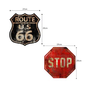 Kit placas decoração stop, gas station e route 66 trânsito Kit placa stop + route 66 + gas satation