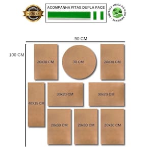 Quantidades: 7 peças 20x30 cm, 1 peça 30x30 cm e 1 peça 40x15 cm