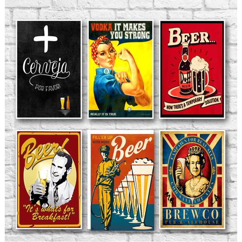 Kit Placas decorativas Vintage - Bebidas - 06 Placas