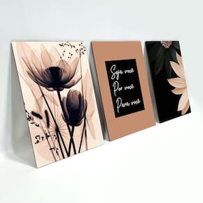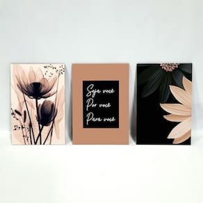 Kit Placas Quadros Decorativos 3 Peças Mdf - Seja Você Produzido em MDF 3mm com aplicação de adesivo com impressão em alta resolução e fitas dupla face no verso para facilitar a fixação. Quadros decorativos são tendências e uma excelente idéia para decorar ambientes de forma econômica e bonita, elas são leves e extremamente fáceis de instalar; além de servir para a decoração de qualquer ambiente, desde estabelecimentos como restaurantes, bares, lojas até quartos, sala, área de lazer, churrasqueira, dando um toque especial em sua decoração. Cada quadro tem a medida de: Largura: 19,0cm Altura: 28,5cm Espessura: 0,3cm Pode ser deixado um espaçamento de até 3cm entre cada quadro no momento da instalação. Ean: 7898928707513