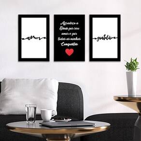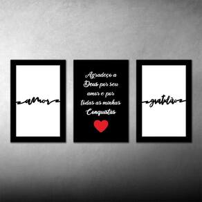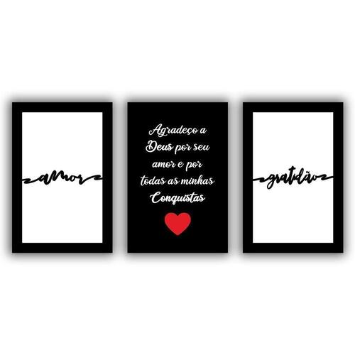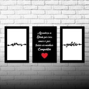 Kit Placas Quadros Decorativos 3pçs 20x30 Deus Amor Gratidão