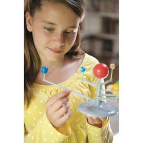 Kit para construir seu próprio modelo planetário do sistema solar de 30 cm que brilha no escuro. Com as instruções a criança pode montar, pintar e destacar os detalhes com brilho. No quarto, ao deitar ela pode assistir ele brilhar como se estivesse no espaço.