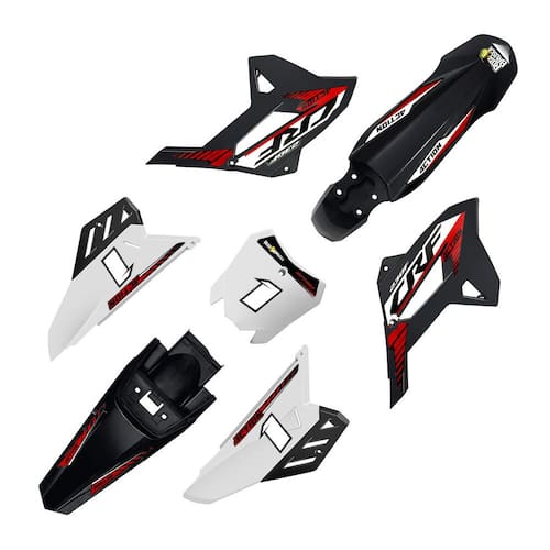 O grande diferencial do Kit é a fusão dos melhores elementos de todos os kits plásticos lançados até hoje, foi projetado corrigindo todas as falhas anteriores tendo sua construção utilizando plásticos altamente flexíveis e resistentes para maior durabilidade do kit além de dar um novo visual renovado para a moto.