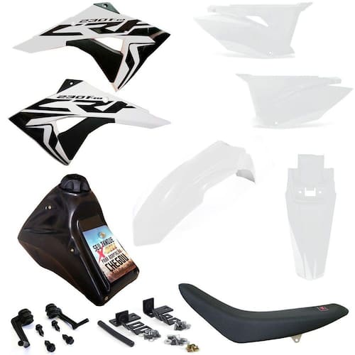 O kit Plásticos adaptável foi desenvolvido para deixar sua moto com a cara da Honda CRF 230 e também deixar mais leve.