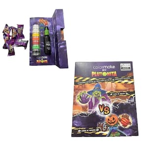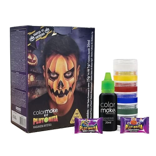 Kit plutonita maquiagem ártistica cabeça abóbora colormake o kit de maquiagem cabeça de abóbora colormake & plutonita é uma colaboração inédita entre as marcas colormake e plutonita, especialmente para o halloween. Ele é composto por diversos produtos que permitem que você crie maquiagens incríveis e se divirta com chicles temáticos. Contém: - 1 kit tinta cremosa 6 cores - 1 pó hd - 1 gosma zumbi - 3 chicletes baba de bruxa - 3 chicletes cabeça de abóbora - 1 roleta interativa - manual passo a passo atenção: imagem meramente ilustrativa. Pode ocorrer mudanças no tom da cor para o produto real ou mudanças na embalagem sem aviso prévio por parte do fornecedor/fabricante. Ean: 7898595468960