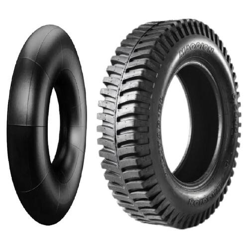 Pneu para uso com câmara de ar, modelo misto. Seu desenho da banda de rodagem tipo militar proporciona tração em qualquer tipo de terreno. Sua construção garante alta resistência nas laterais e boa dirigibilidade.