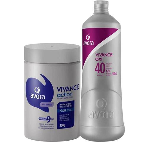 Pó Descolorante: Em um recipiente não metálico, misture o produto com Vivance Oxi Água Oxigenada Cremosa de 10, 20, 30 ou 40 volumes (de acordo com o grau de clareamento e textura desejado), na proporção de 1 para 2 (por exemplo, um copo dosador de Vivance Action Pó Descolorante para 2 de Vivance Oxi Água Oxigenada Cremosa). Misture com uma espátula não metálica ou pincel até obter uma mistura homogênea. A aplicação deve ser feita em cabelos secos e não lavados, começando pela nuca ou pelas partes mais escuras. Após o tempo de ação, lave completamente os cabelos com água morna para remover completamente o produto. Em seguida, use Avora Splendore Equilibrium ou Avora Splendore Color Up para cabelos quimicamente tratados. Tempo de Ação: Deixe agir de 10 a 45 minutos, dependendo do grau de clareamento desejado e da estrutura e porosidade dos cabelos. Advertências: Pode causar reação alérgica. Não aplique se o couro cabeludo estiver irritado ou lesionado.