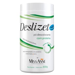 Pó Descolorante Deslizet Proteína 300g O Pó Descolorante Deslizet Miss Anne proporciona um procedimento de descoloração rápido e eficaz, descolore facilmente os cabelos sem danificá-los. Os cabelos durante o processo químico de descoloração podem torna-se ressecados e danificados. A Miss Anne pesquisou e desenvolveu o Deslizet Pó Descolorante com proteínas que oferecem excelentes resultados nos processos de clareamentos total, mechas, balayagens, reflexos e luzes. AÇÃO/ATIVOS: O Pó Descolorante Deslizet Miss Anne foi cuidadosamente desenvolvido para promover um processo rápido e eficaz de descoloração dos cabelos, promove um resultado excelente sem danificar os fios, protege e auxilia na hidratação dos cabelos. MODO DE USAR: Mais Informações estão contidas no verso da embalagem. .