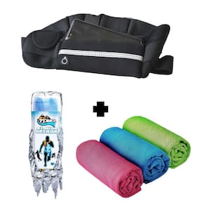 Nada melhor do que ter para a corrida a pochete para proteger seus documentos e celular e uma toalha refrescante.
